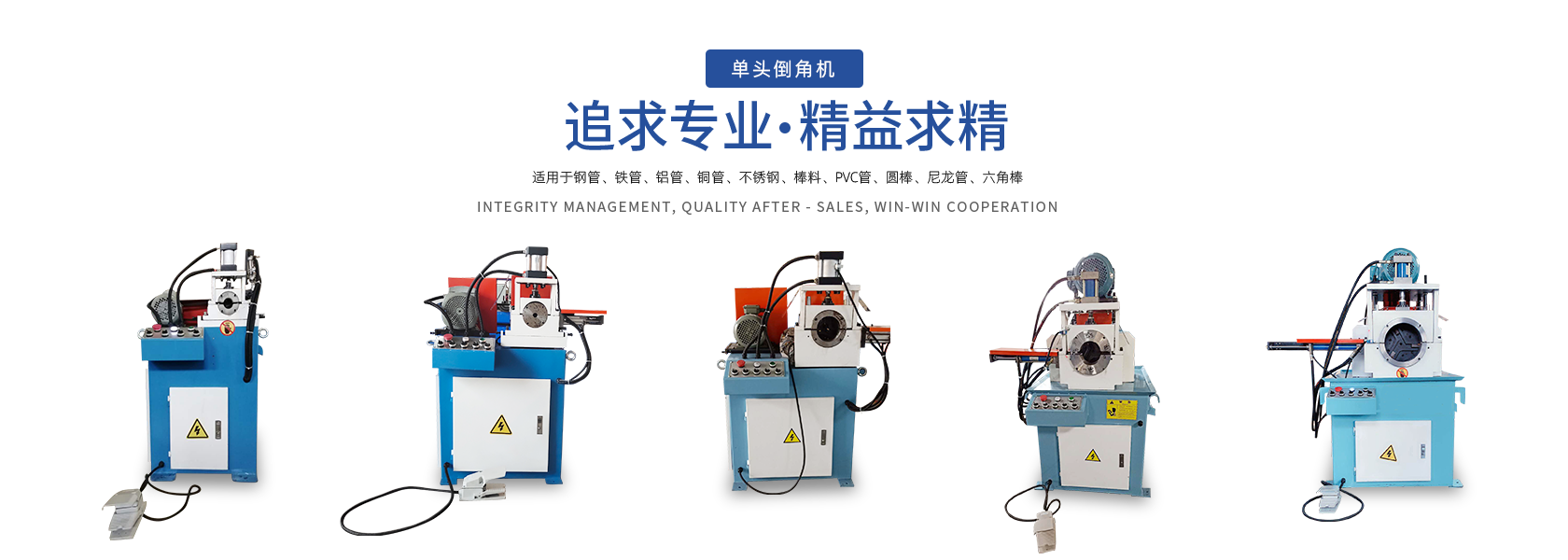 公司目前專注于研發、制造、生產各類優質全自動倒角機,現開發生產的主要產品有:精密雙頭倒角機、氣動雙頭倒角機、液壓雙頭倒角機、金屬圓管圓棒倒角機、端面加工倒角機以及單頭液壓倒角機等等。為汽車、摩托車、體育健身器材、鋼管家具、旅游休閑用品、水暖衛浴等行業的金屬管制品的加工提供了完美的機械設備。